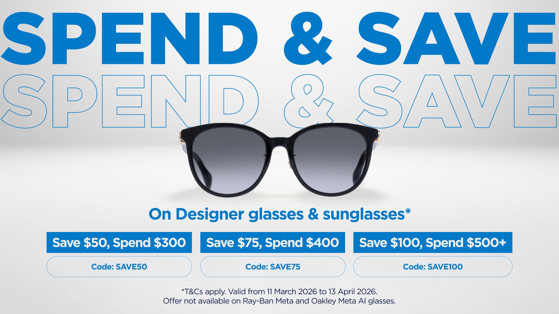 Buy two pairs of designer glasses and receive 50% off your second pair*